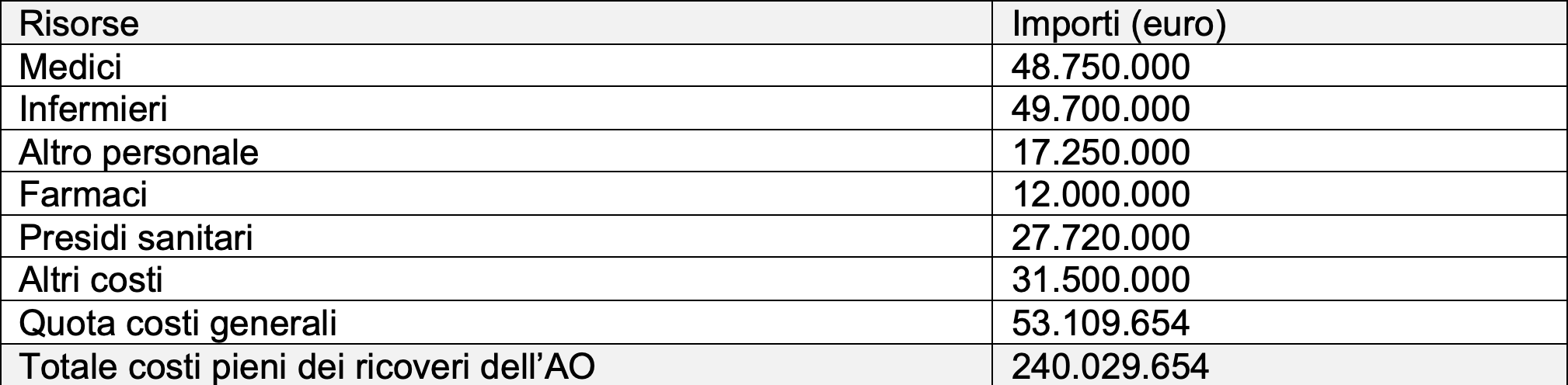 Salviati: «Il problema è che noi abbiamo il totale della spesa dei ricoveri, inclusi day hospital e day surgery».