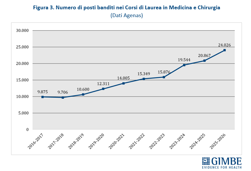 «I dati», aggiunge Cartabellotta, «mostrano chiaramente che la cosiddetta gobba pensionistica, dopo aver raggiunto il picco nel triennio 2023-2025, era destinata a ridursi progressivamente negli anni successivi. Per questo motivo, l’aumento massiccio dei posti a Medicina non risponde a un reale fabbisogno strutturale».
